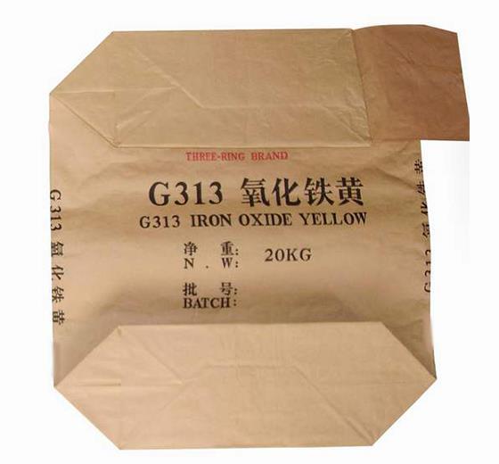 纸塑复合方底阀口袋:由牛皮纸、复合树脂、编织布为基材经挤出膜复合为一体,构成高强度基材,把袋片底部经过对齐折叠,使用环保胶水,经过手工翻折,制成下封口上开口的包装袋类型,底部贴有牛皮纸制成的加强盖纸!